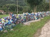 Well, Hotel Jardin de Eugenia should have alerted me. Next stop after Nueves, day dawned bright and clear, cows in the next paddock had brought themselves down to the lower paddock, next time I looked about 6.50 am they had gone but for a solitary heifer... So on the road for Ribadsella by 7.15. Obedientally followed the Camino signs and did not follow the road sign that said R etc was 10 ks away and walked thru cow pats, mud and puddles to a Albergue in Cuerres hoping for coffee, nada... 15 ks later... But met my lovely kiwis again. They had enjoyed a great Camino night in an alberque just after Nueve with a real united nations, a Pole, injured foot, know how he feels, a Czech girl and ? plus them. Anyway we trotted on, many big puddles on the back ways this am after the rain yeaterday, bikes make it so much worse... Rained now and again just to keep us awake... I was definitely slightly seedy after demolishing over a wet afternoon a yummy bottle of temparillo rose.,. Well it was wet., But managed the few hills without stopping, did bribe them once with hazel nuts and jelly babies, Richard was onto me.. We arrived at a very grumpy bar , did not like packs and wet gear over the place even though we spent an average of 5e each. Pereginos inject millions into the economy but are treated quite often v badly. Some little bar owners are great but some are just awful. Mind you most Spanish are not good in the am I just leave now in the mornings having made arrangements the night before to just go...they like it, one less for brekkie. Means I have to organise my own my lunch rather than steal it, usually in the am have a piece of fruit , some water to wash down the various drugs then about two hours walking later, a bar , and have tortilla, I have called them frittatas and very strong coffee. So sadly left my kiwi friends and found my tres twee hotel. mrs speaks some English, Mr just acts arrogant. He and I had sort of words about my question about my next stop, he was so rude that as new customers walked in I said'I hope you speak Spanish as you will get no help otherwise.. and stamped out Found a restaurant for lunch, 2pm, no seats and they hate solos anyway. Waited a time then they gave me a seat (and table) facing into the door. Suddenly there were hordes of Spanish waiting for tables, must have been three deep around the bar, restauranter Handed out numbers, mine was 10,I saw 20'being handed out, I munched on... Pretty ordinary food, salad, pork snitzel and chips (classic white food) then a choccy thing plus water, wine and bread all for 14e. Hence the numbers I guess. Back to Mr Grumpy.NZ 210 Mr Grumpy!!! T always hated trendy little hotels, must say the big big chains usually pull it off. Out of here at the crack of light, about 7.10 for a place I am not sure where it is in relation to the camino so shall just walk N634,, Just hope the door is unlocked.. Despite all that Ribadesalls is an attractive little town at the mouth of a nameless river...plus it has famous neolithic caves which I guess all the grumpy kids get dragged to... Pikkies 1, Someone imitating Agustin Ibarrolo just out of Cuerres 2.View along the river ? at Ribadesalls 3. Stunning view of carpark from my room.,![]()